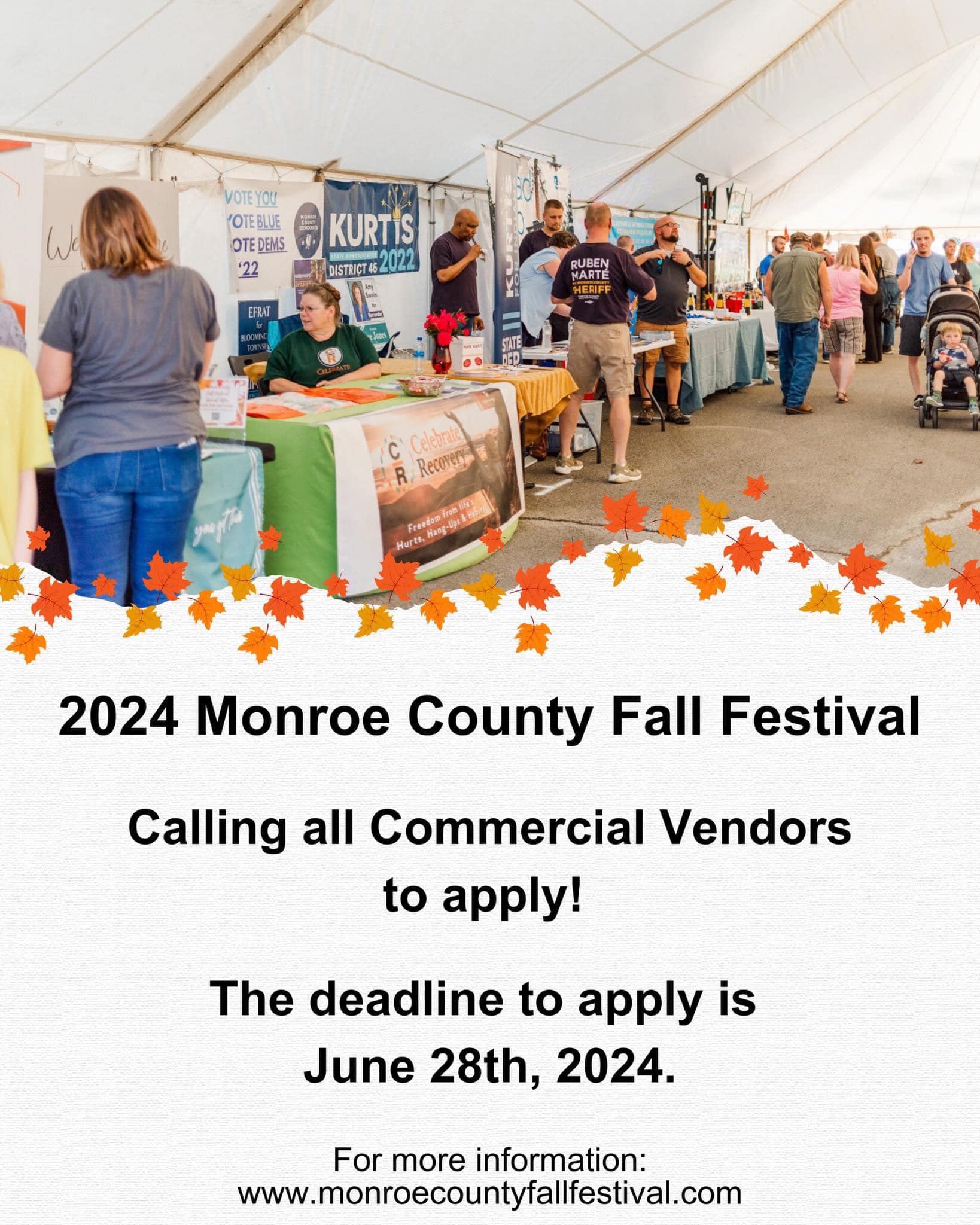 The Monroe County Fall Festival has a couple spots still available in the Commercial Tent.