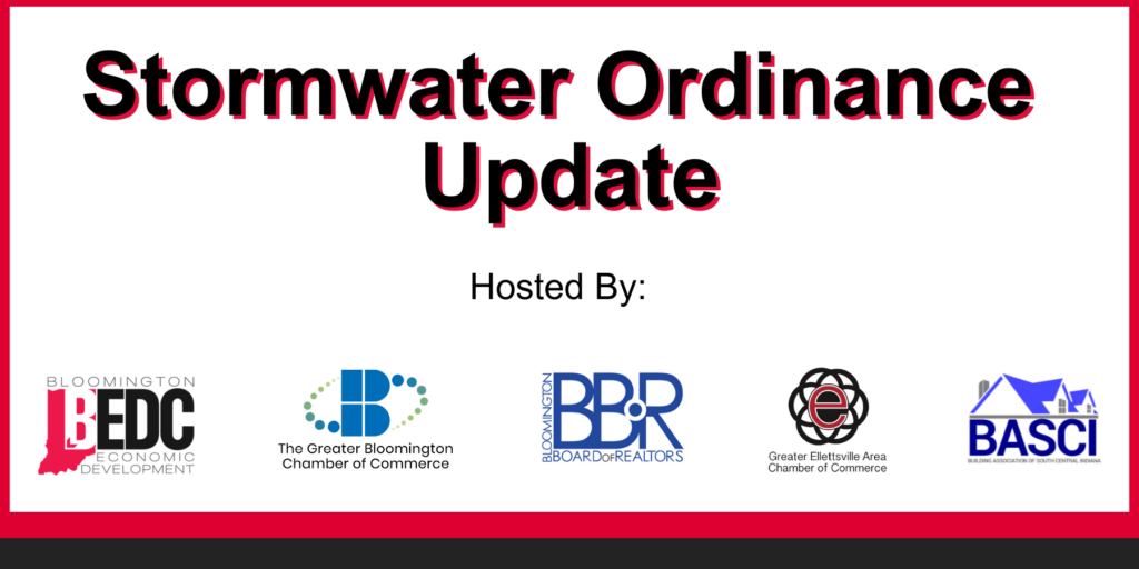 Join us as Monroe County, the City of Bloomington, and Town of Ellettsville discuss recent local changes in Stormwater Ordinances (Title 13), following a shift in state regulations. These changes will affect properties, building, and development across the community. This event aims to help attendees understand the basic changes, how each jurisdiction compares, and where to go for project-specific questions.