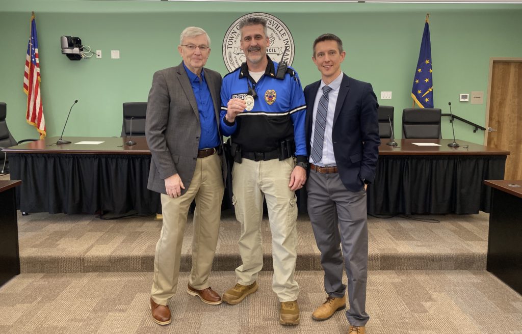 Congratulations, Officer Jeff Baker! Officer Baker is the newest Reserve Officer of the Ellettsville Police Department and has served as the SRO at Seven Oaks Classical School for the past 3 years. After completing the Indiana Law Enforcement Training, he was sworn in on Wednesday, February 8, 2024 by Clerk-Treasurer Noelle Conyer at the Ellettsville Town Hall. Chief Durnil presented Officer Baker with his badge who was also accompanied by Head of School, Dr. Stephen Shipp.