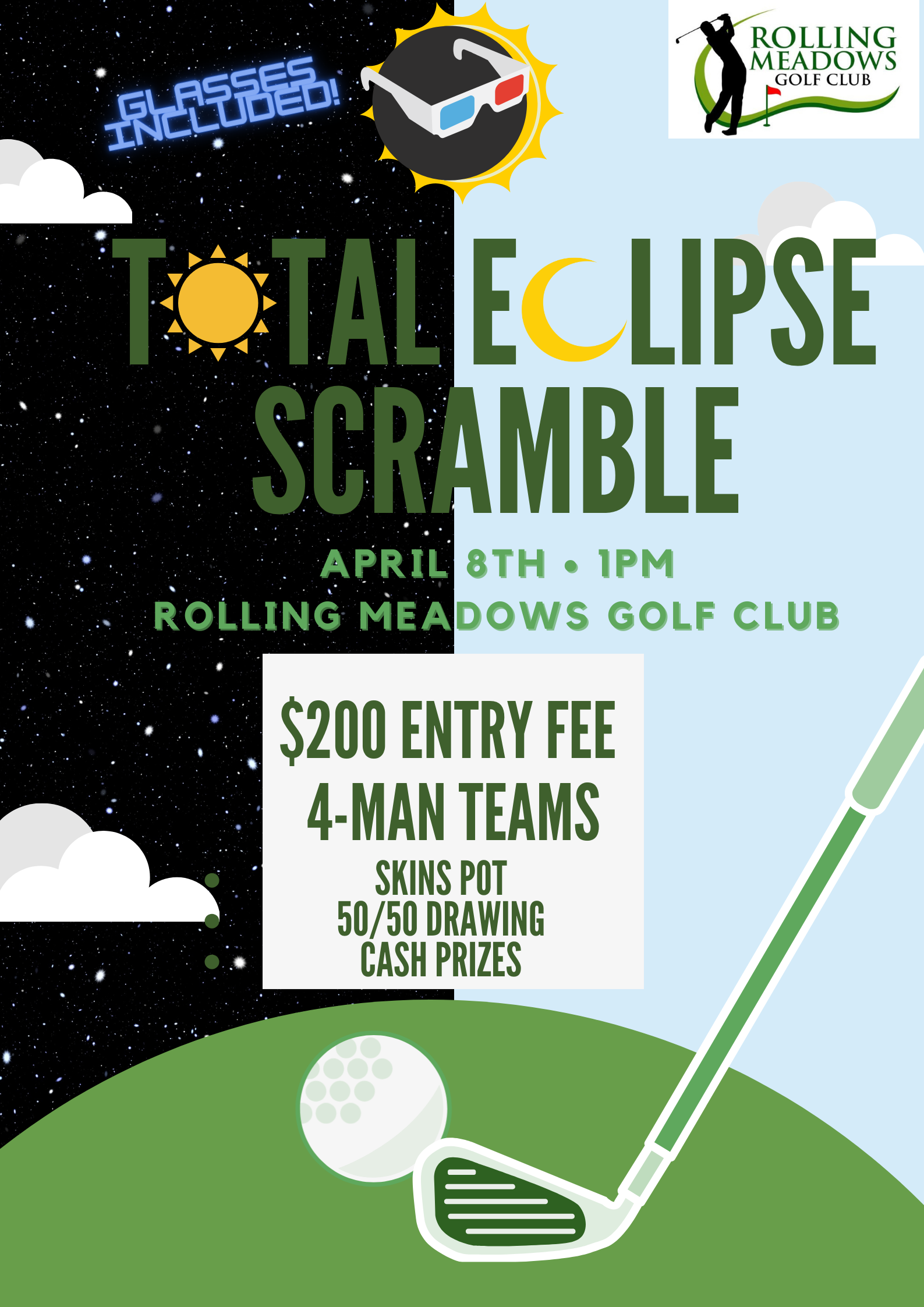 Find your best group of 4 golfers and sign up for our Eclipse Scramble on Monday, April 8th at 1:00 pm!