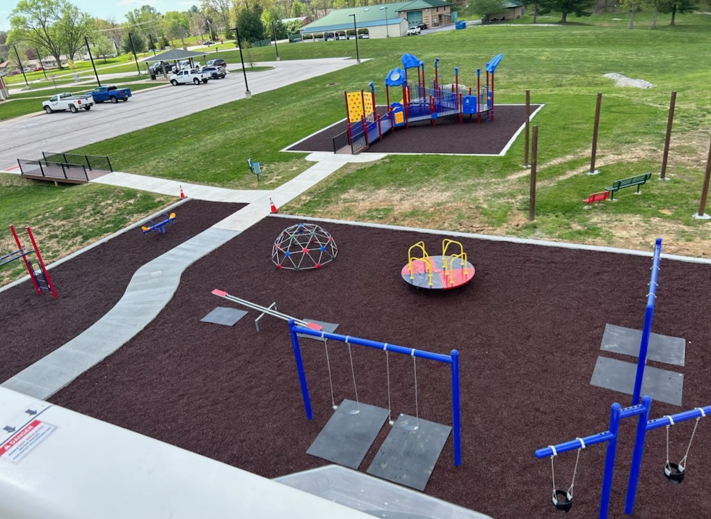 The Ellettsville Department of Public Works has finished the playground at the park at Town Hall. Thank you to all of the employees for a job well done! We hope everyone will take their children there to play someday! We are currently working on Phase 2 of the playground which will include a 32-ton rock at the head of the park with a sand park around it, landscaping and trees.