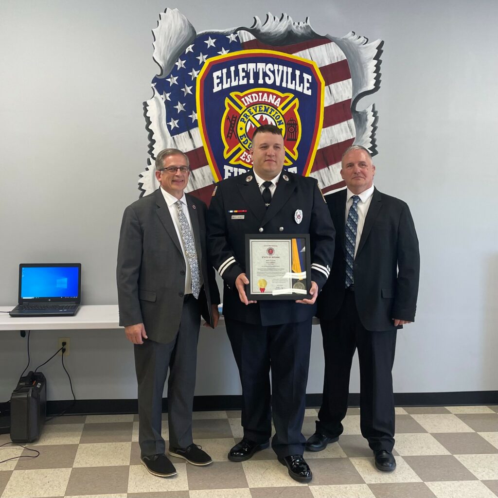 Captain Matt Siebott was awarded the State Fire Marshal's Medal of Valor in a heartfelt ceremony at the Ellettsville Fire Department on Thursday afternoon.