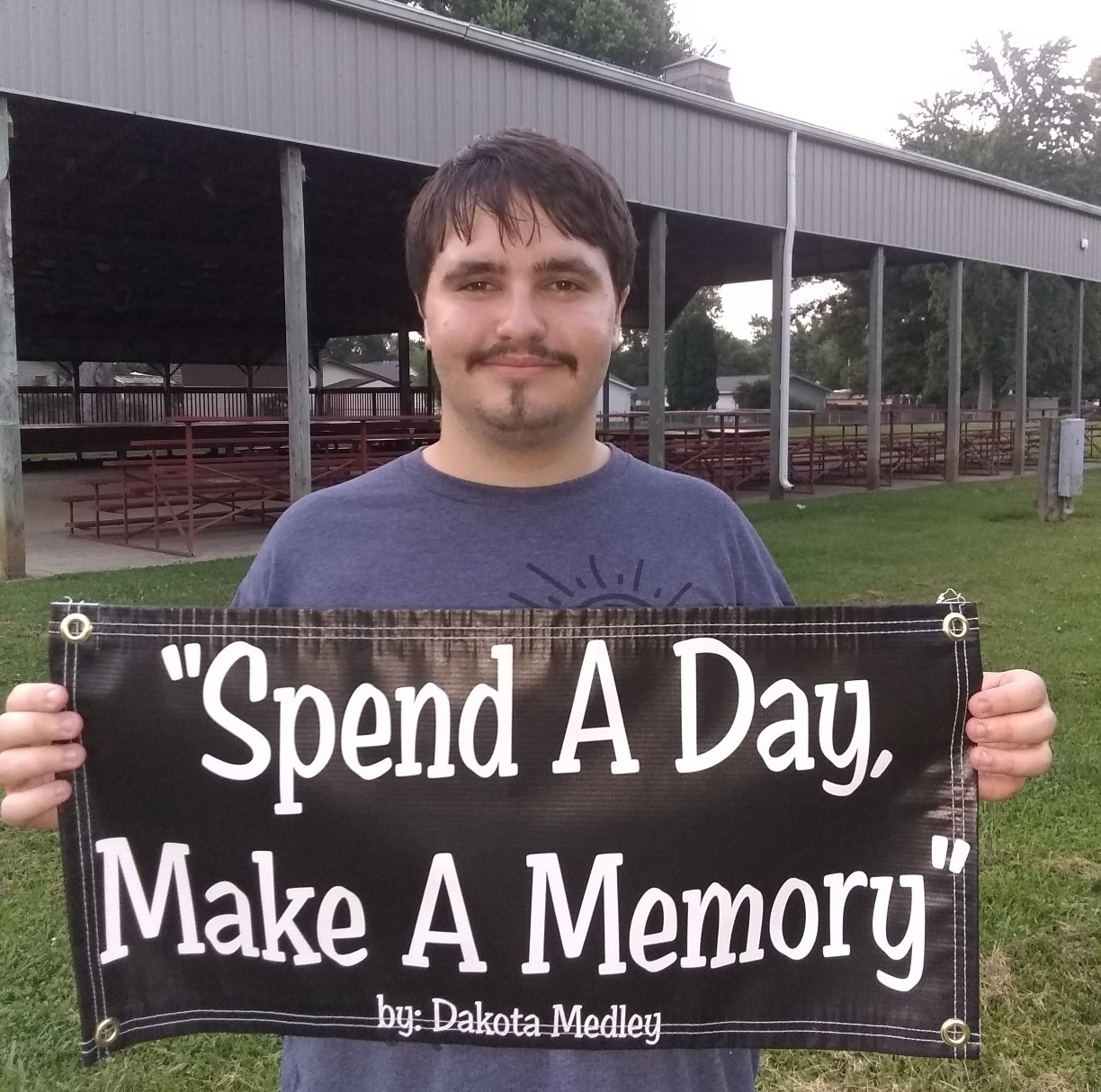 Dakota's first field trip during Kindergarten was to the Monroe County Fall Festival and he's been making memories at the Festival since. He is pictured here holding his slogan standing in front of the Fall Festival Shelter House main stage.